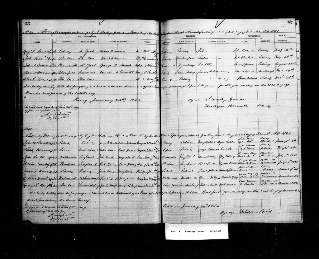 Wedding of Mary Ann Patterson and Benjamin Foster (14 February 1861)