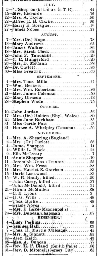 On 7 February 1898 a death is recorded for a Benjamin Foster aged 82 in the Daily Intelligencer newspaper published in Belleville on 7 January 1899 in the annual “Death Roll” for 1898. Is this the Benjamin F. Foster who married Mary Ann Patterson?